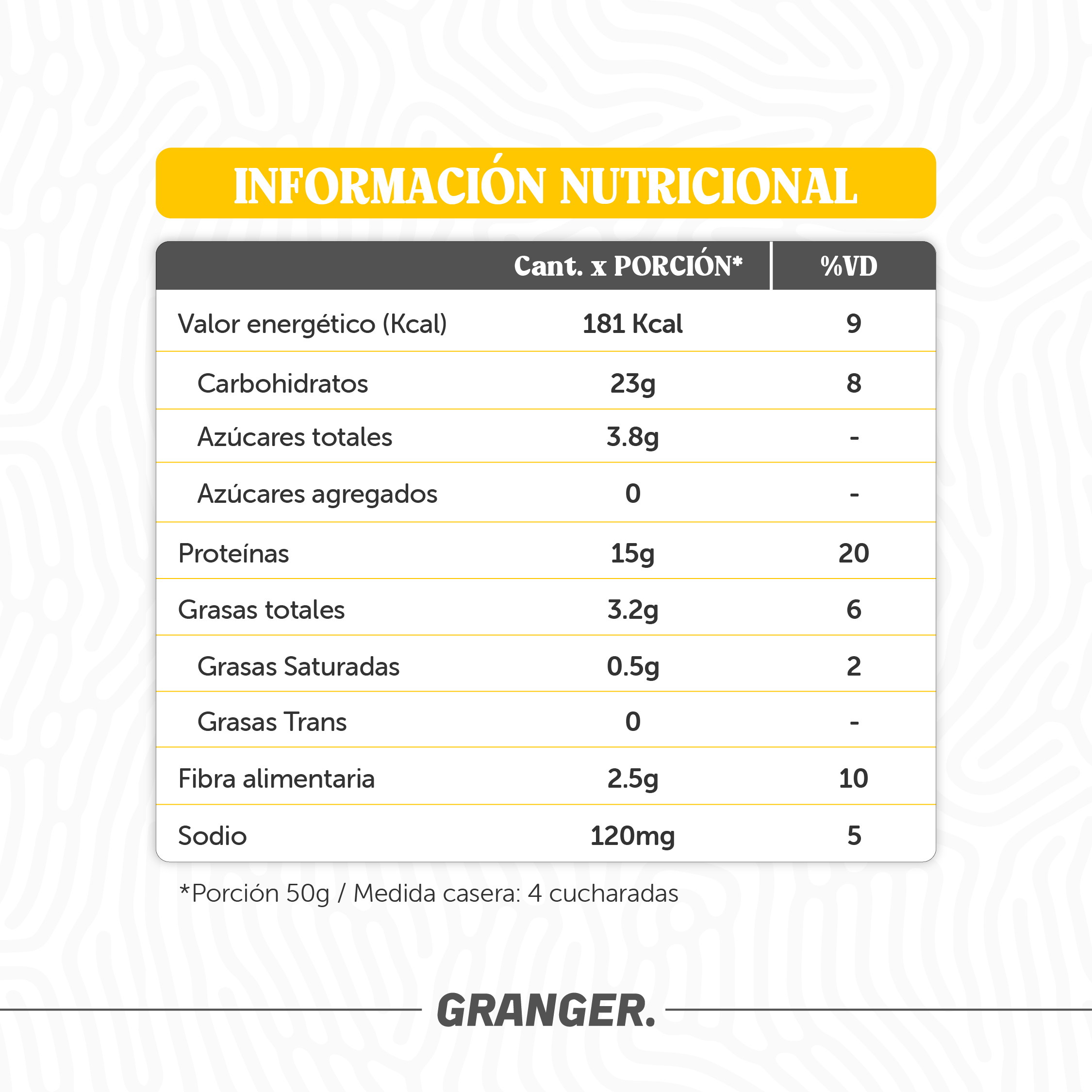 Cada porción de 50g aporta: